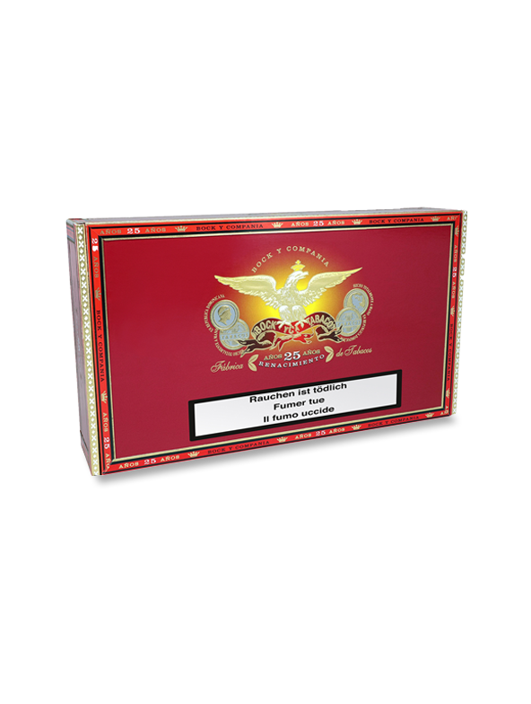Im Jahre 1999 betrat die Marke Bock y Ca. die grosse Bühne. Es war Heinrich Villiger selbst, der der Marke neues Leben einhauchte. Ehemals aus Cuba wurde die Dominikanische Republik, die es bis heute noch ist. 25 Jahre später feiert die Marke ihren grandiosen Geburtstag. Eigens dafür wurde die Geschichte um Gustav Bock Müller noch einmal aufgerollt. Der Adler und die cubanische Herkunft stehen als maximales und unverwechselbares Sinnbild für diesen Mann, die Zigarren und seine Marke. Die Zahl 25 kommt als weitere tragende Säule hinzu und bildet somit den Grundstein für eine limitierte Neuauflage, die ihresgleichen sucht.