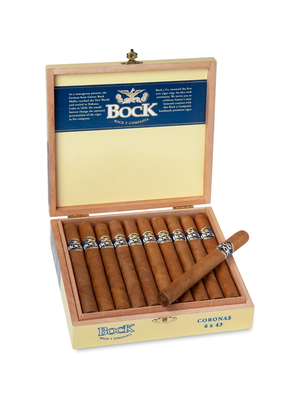 A welcome addition to the Villiger portfolio, the original BOCK Y COMPAÑA balanced cigars are mild and have a light draw. The inventor of the cigar band, Gustavo Bock, created a precedent for these cigars that were still being made in Cuba in the 1930s. Perfectly rounded with a selection of pleasant aromas, these cigars are ideal for aficionados and newcomers alike.