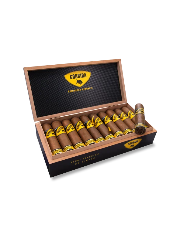 The CORRIDA DOMINICAN REPUBLIC tobacco blend consists of perfectly balanced and exceptionally long-aged Dominican tobaccos. They are wrapped in a binder from Indonesia and a double-fermented Ecuador wrapper. The combination of the naturally spicy sweetness of the wrapper with the full, yet delicate aromas of the binder and filler guarantees an exceptional taste experience of the highest class. Mild yet full of flavor, with delicate roasted aromas, the two XXL formats present themselves to the discerning cigar lover.