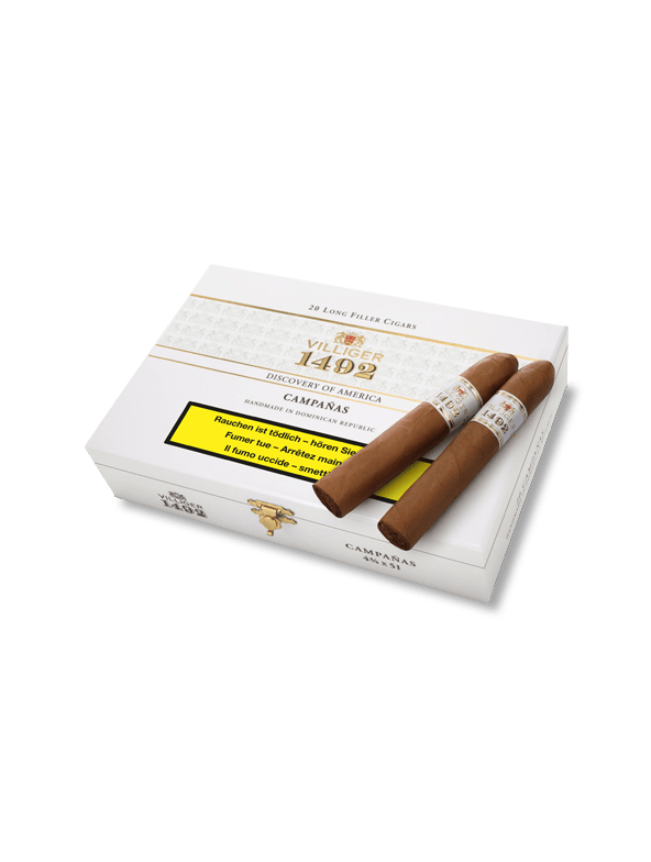Le VILLIGER 1492 fait référence à Christophe Colomb, qui en 1492 il a apporté du tabac en Europe lors de ses voyages de découverte. Ces cigares de haute qualité sont plutôt doux et très agréables à fumer. Aux arômes de bois, de noix et de pain grillé, légèrement sucrés et parfaitement équilibrés, ils offrentle plus beau plaisir de fumer, qui, grâce au mélange de tabac sélectionné, ravira les amateurscigares dominicains doux.