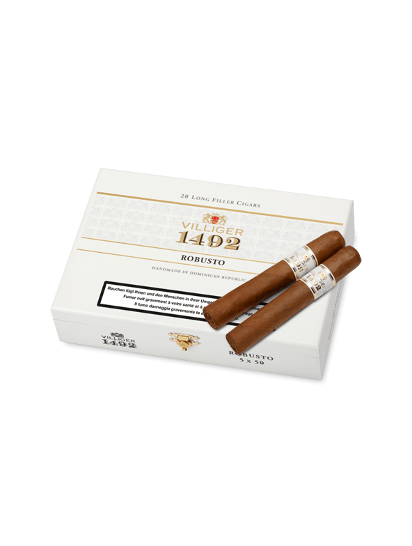 Créé en hommage à Christophe Colomb, qui a découvert le Nouveau Monde en 1492 et qui a ramené de son voyage le plaisir que procure le tabac jusqu’en Europe, le VILLIGER 1492 est un cigare d'exception, plutôt léger et très agréable à fumer. Avec ses arômes de bois, de noix et de pain grillé, légèrement sucré et parfaitement équilibré, ce cigare vous offre un plaisir de fumer à l'état pur et qui satisfait tous les sens.