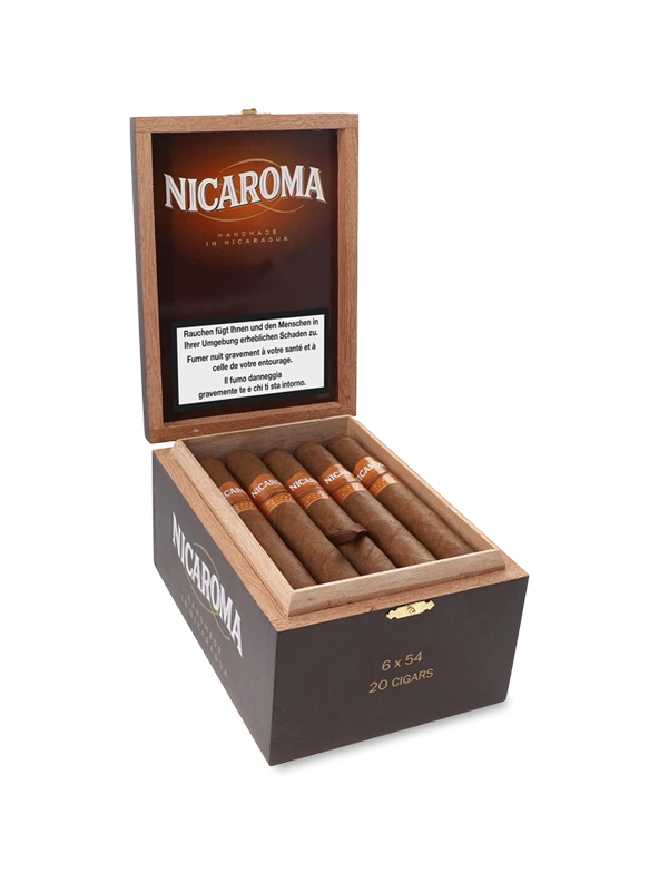 NICAROMA – ein Name, der zwei Dinge verbindet und die Brücke schlägt zwischen Nicaragua und der Vielfalt der Aromen. Diese vollmundigen und spannenden Zigarren, meisterlich von Hand gerollt, verbinden die feinen Aromen Nicaraguas und werden zu einem ganz besonderen Rauchvergnügen. Leder und Naturverbundenheit sind die Schlagworte, die beim Genuss dieser Zigarren sofortaufblitzen. Im Nu sehen Sie sich mit einem Chopper durch die ungebändigte Landschaft cruisen – den Wind im Gesicht. Abends am Lagerfeuer geniessen Sie eine schöne NICAROMA und lassen die Gedankenschweifen. Einfach unvergleichlich. Geschmack: Gekonnt komponiert und facettenreich verspricht diese Zigarre dem Kennernicaraguanischer Zigarren ein wahres Geschmackserlebnis. Schon die Masse der „Nicaroma 6 x 54“ mit einer Länge von 152 mm und dem grossartigen Durchmesser von 22,5 mm, zeigen Ihnen, dass diese Zigarre idealgeschaffen ist für den Einstieg in einen langen, genussvollen Abend.