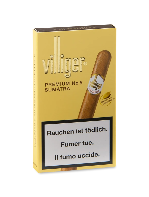Die VILLIGER PREMIUM NO 5 SUMATRA bietet eine einzigartige Tabakmischung aus Südamerika und Brasilien. Das Sumatra-Deckblatt rundet die angenehme Raucherfahrung ab.