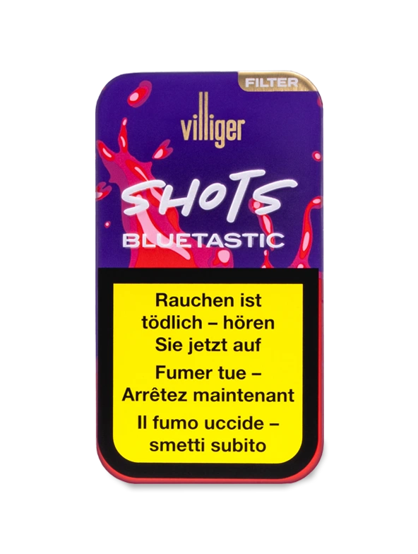 Die VILLIGER SHOTS Bluetastic enthalten eine angenehme, milde Tabakmischung mit einem intensiven Kick fruchtiger Blaubeere.
