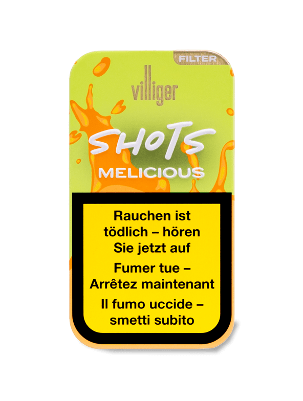 Entfliehen Sie in die Welt von #vibeisland – lehnen Sie sich zurück und geniessen Sie den Moment – wie an einem entspannten Tag auf einer tropischen Insel. Die VILLIGER SHOTS Melicious enthalten eine harmonische Tabakmischung, die auf erfrischende Honigmelone trifft. Die passende Mundstücksüssung macht dieses Raucherlebnis besonders exotisch. Die VILLIGER SHOTS Melicious Zigarillos sind in einem hochwertigen Metalletui verpackt und verfügen über einen speziellen Glow-in-the-Dark-Leuchteffekt auf dem SHOTS-Logo.